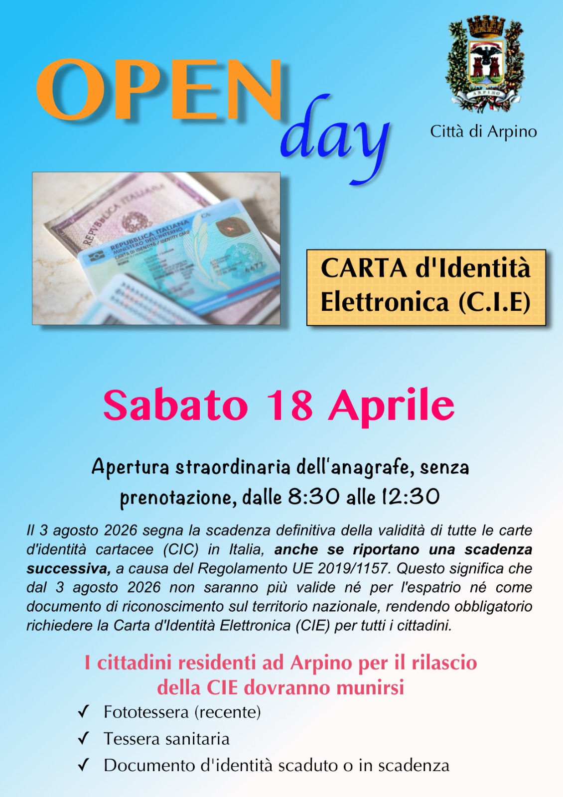 OPEN DAY CARTA D'IDENTITA' ELETTRONICA (C.I.E.)